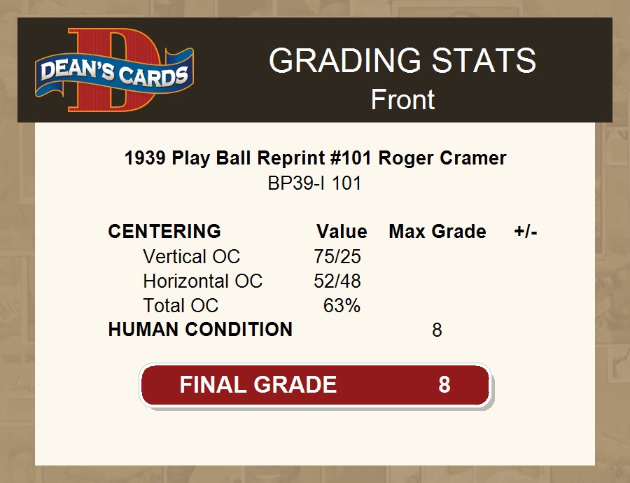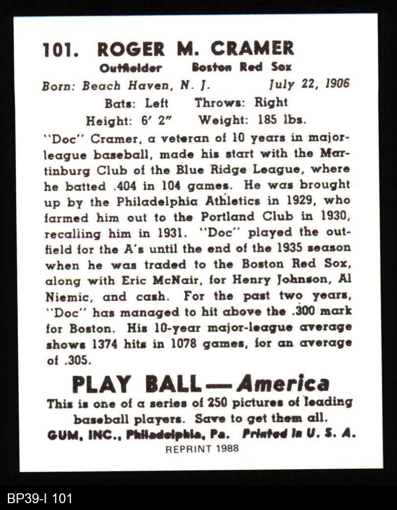 1939 Play Ball Reprint #101 Roger Cramer