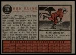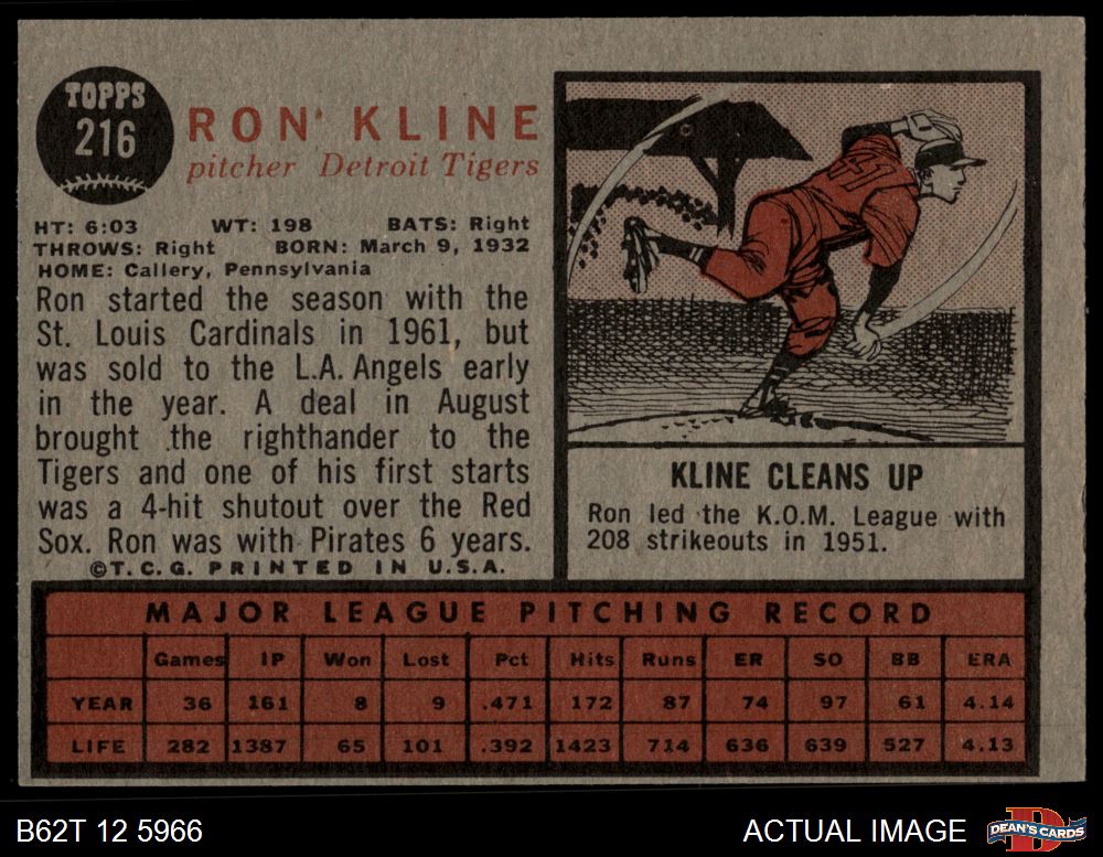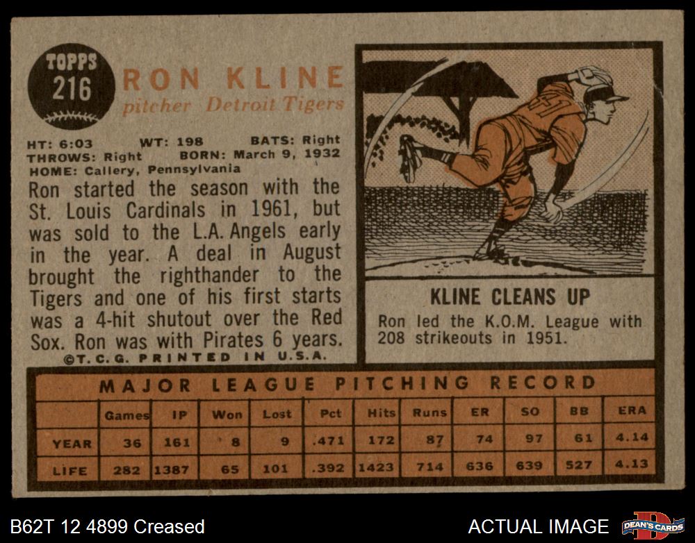 1962 Topps #216 Ron Kline 3 - VG