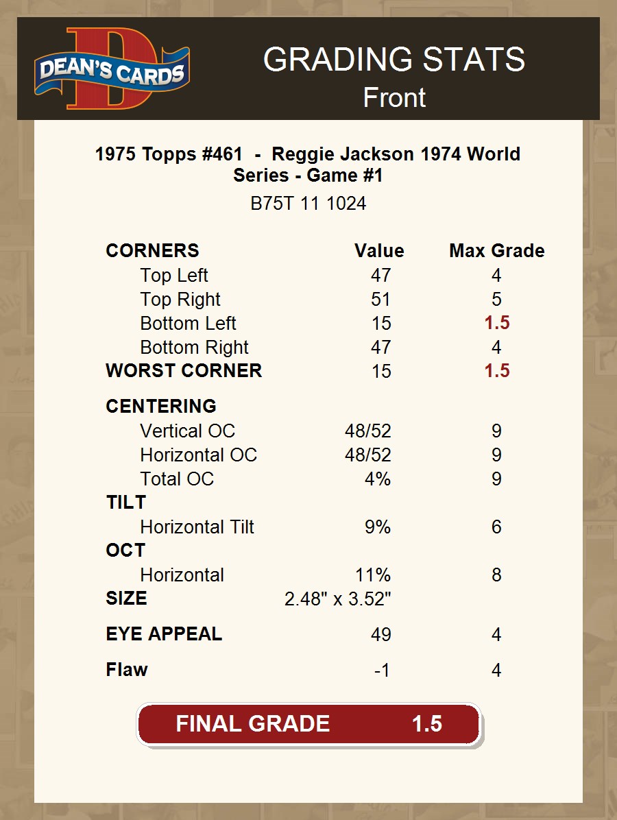 1975 Topps #461 - Reggie Jackson 1974 World Series - Game #1 1.5 - FAIR