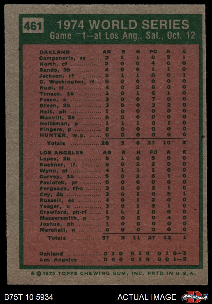 1975 Topps #461  -  Reggie Jackson 1974 World Series - Game #1 Front Thumbnail