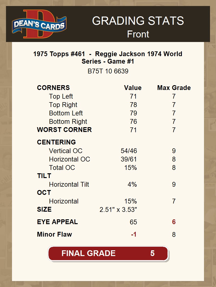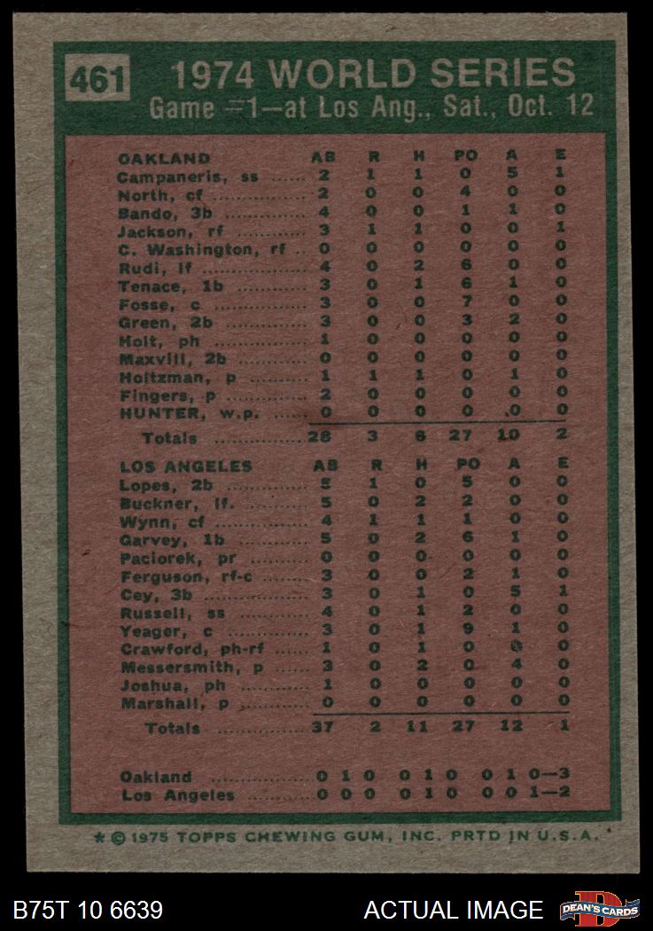 1975 Topps #461 - Reggie Jackson 1974 World Series - Game #1 5 - EX