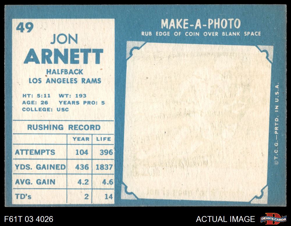 1961 Topps #49 Jon Arnett 6 - EX/MT