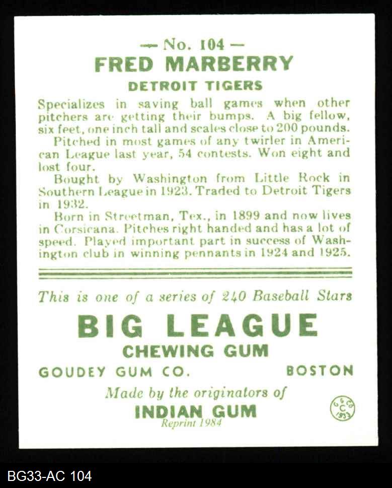 1933 Goudey Reprint (1,589 available)1933 Goudey Reprint Tigers (29 available)