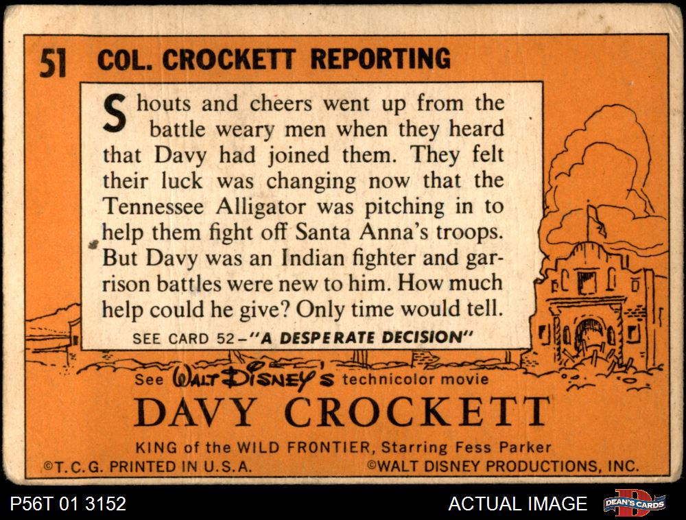 1956 Topps Davy Crockett Orange Back #51 Col. Crockett Reporting
