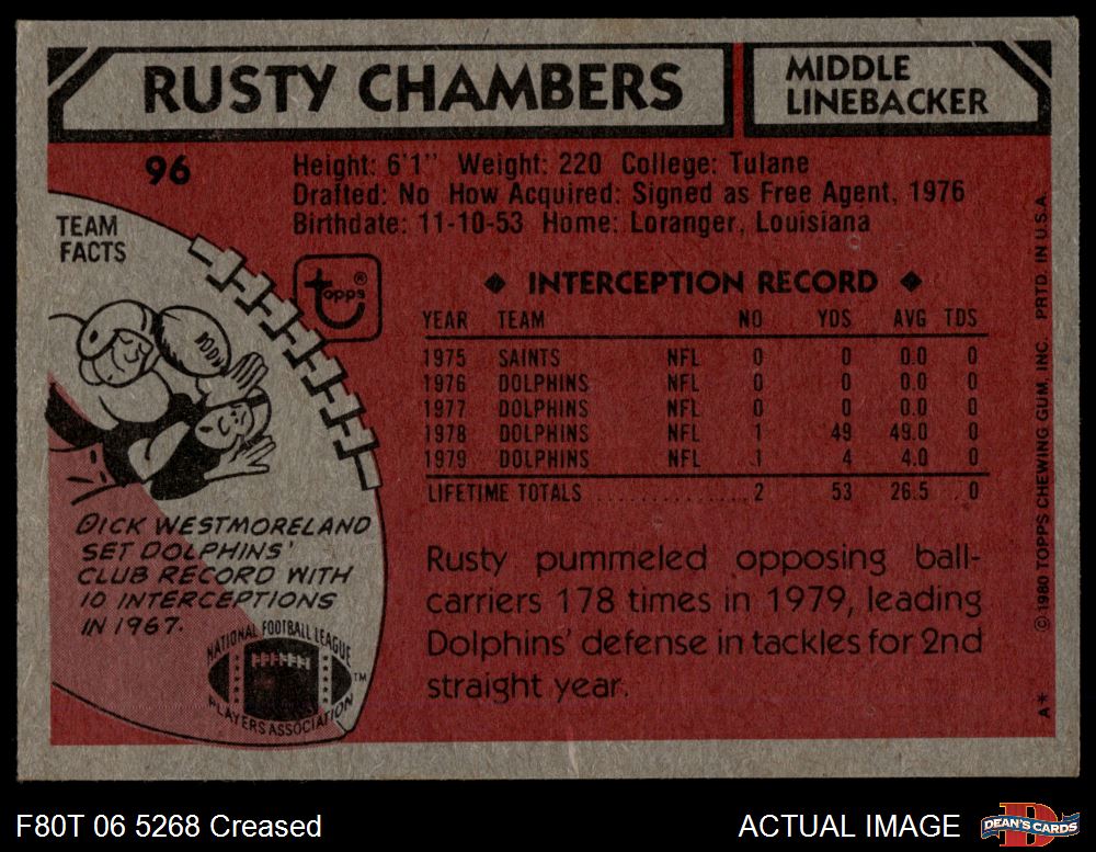 1980 Topps #96 Rusty Chambers Front Thumbnail