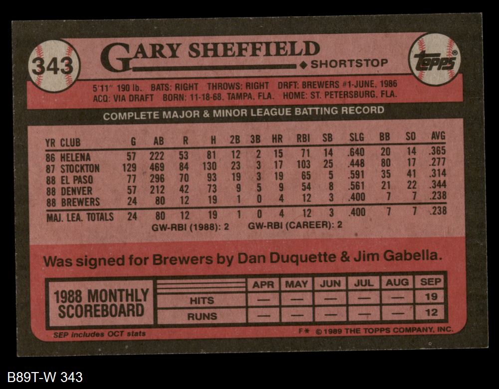 1989 Topps #343 Gary Sheffield 8 - NM/MT
