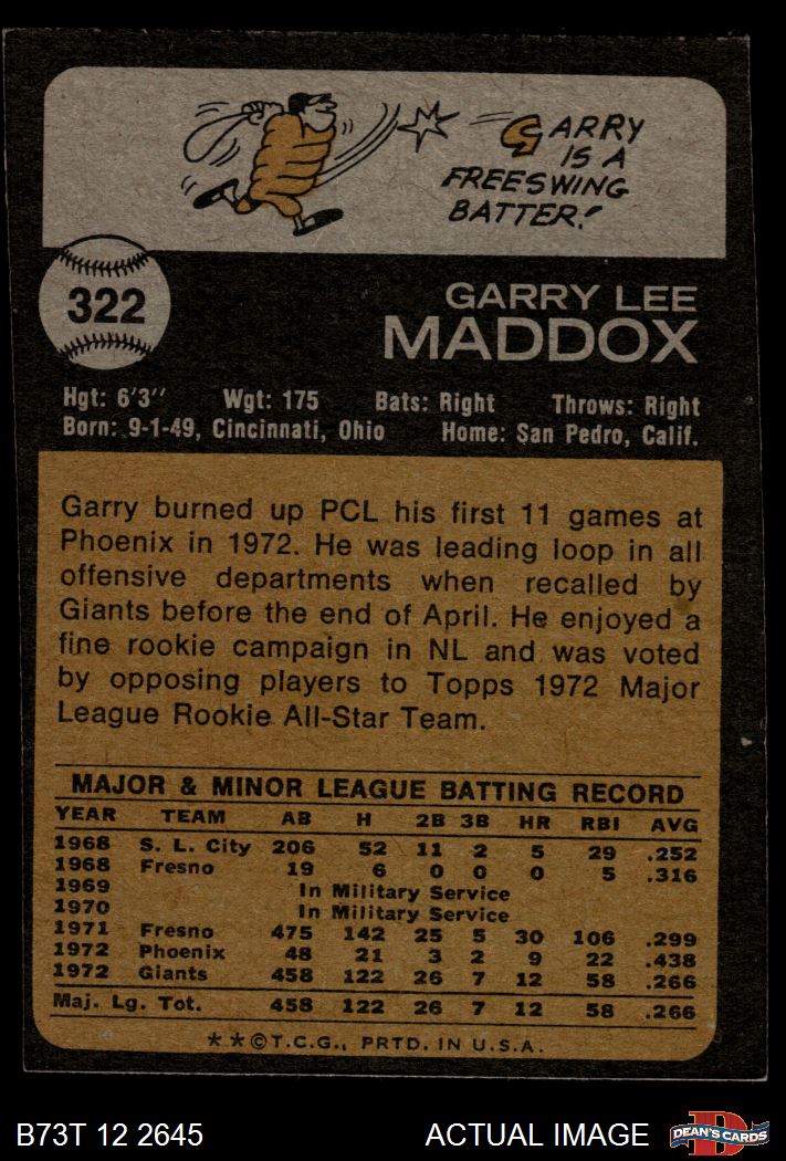 1973 Topps #322 Garry Maddox 2 - GOOD