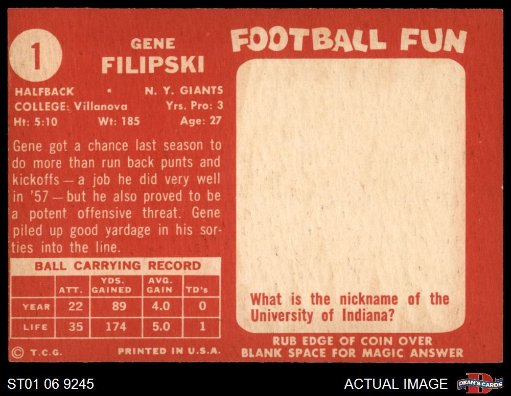 1958 Topps #1 Gene Filipski
