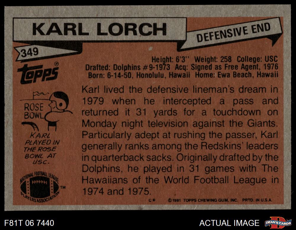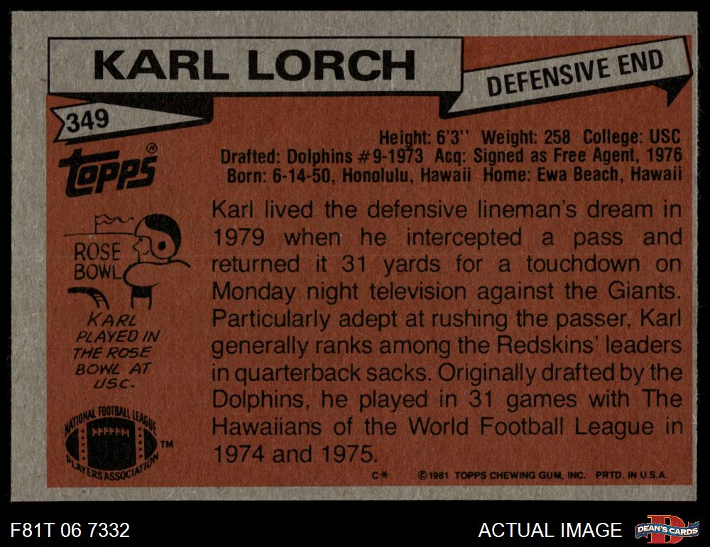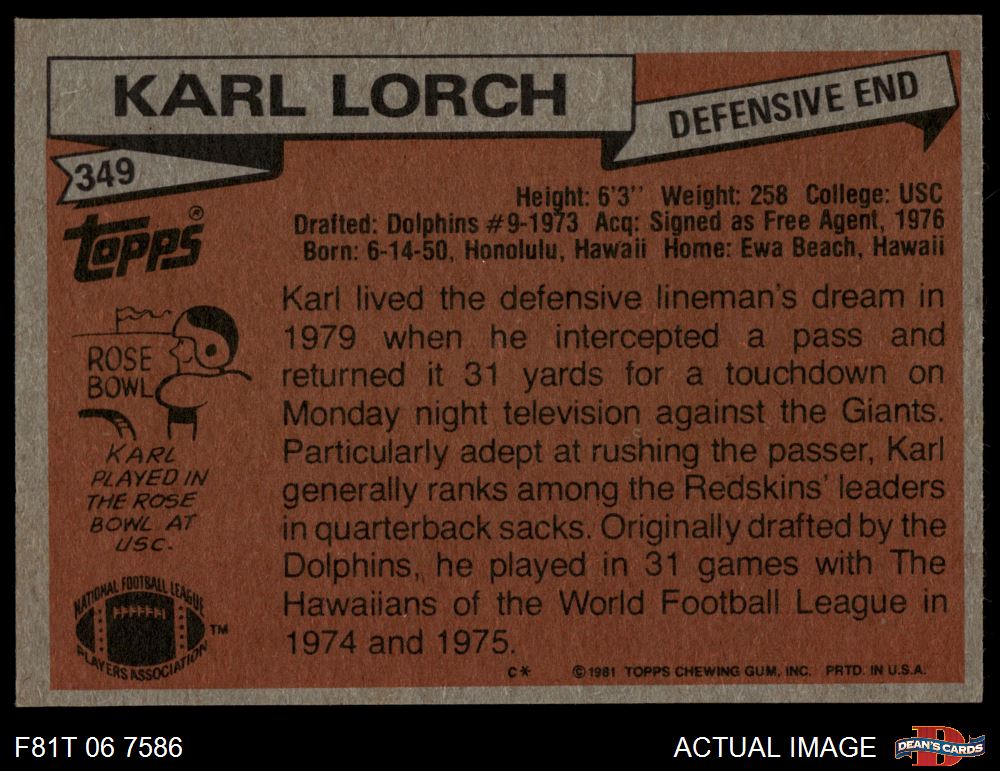 1981 Topps #349 Karl Lorch