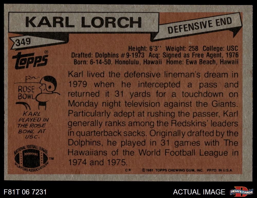 1981 Topps #349 Karl Lorch 8 - NM/MT