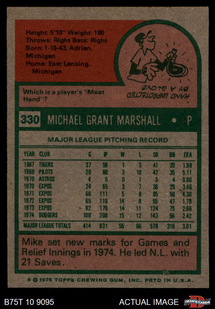 1975 Topps #330 Mike Marshall 6 - EX/MT