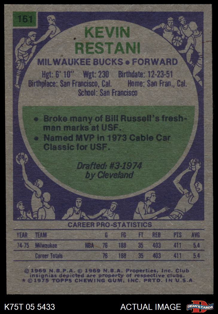 1975 Topps #161 Kevin Restani 6 - EX/MT