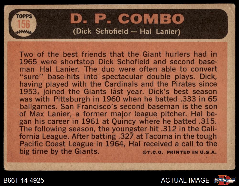 1966 Topps #156 - Hal Lanier / Dick Schofield Double Play Combo 1.5 - FAIR