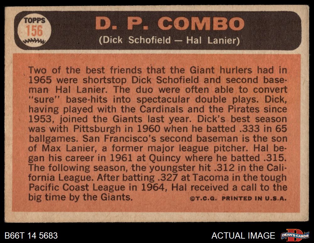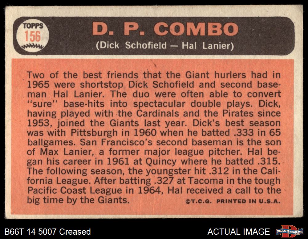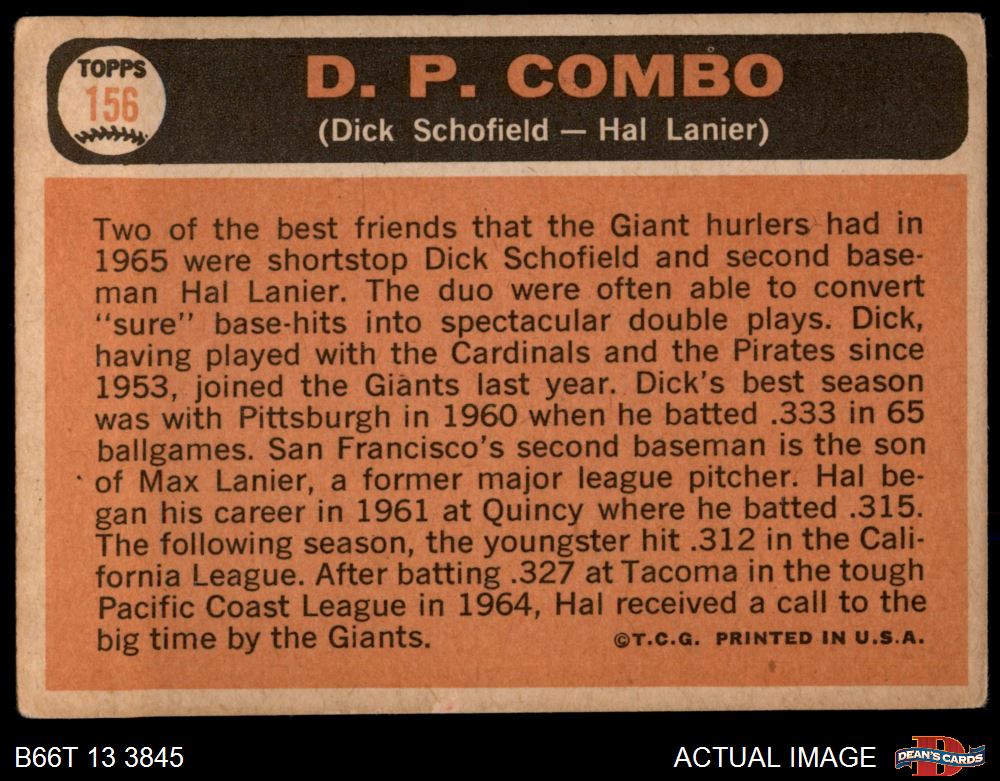 1966 Topps #156 Double Play Combo