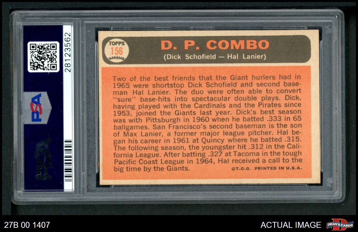 1966 Topps #156 - Hal Lanier / Dick Schofield Double Play Combo PSA 7 - NM