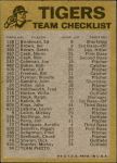 1974 Topps Red Team Checklist Detroit Tigers Red Team Checklist