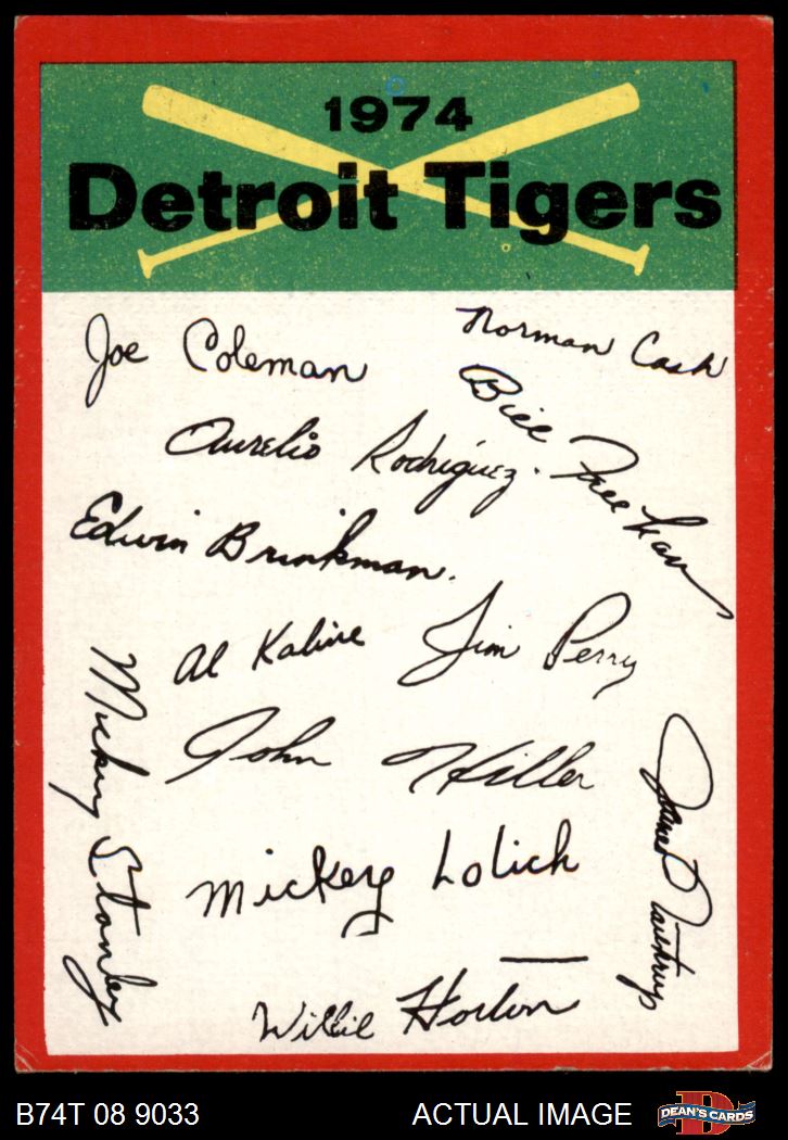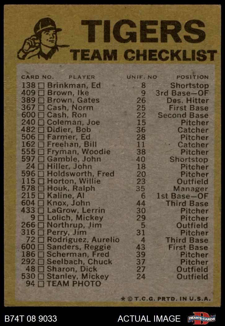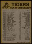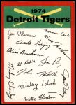 1974 Topps Detroit Tigers Red Team Checklist 4 - VG/EX