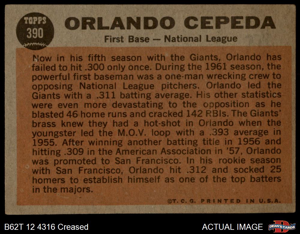 1962 Topps #390 - Orlando Cepeda All-Star 3 - VG