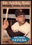 1962 Topps #390  -  Orlando Cepeda  All-Star Front Thumbnail