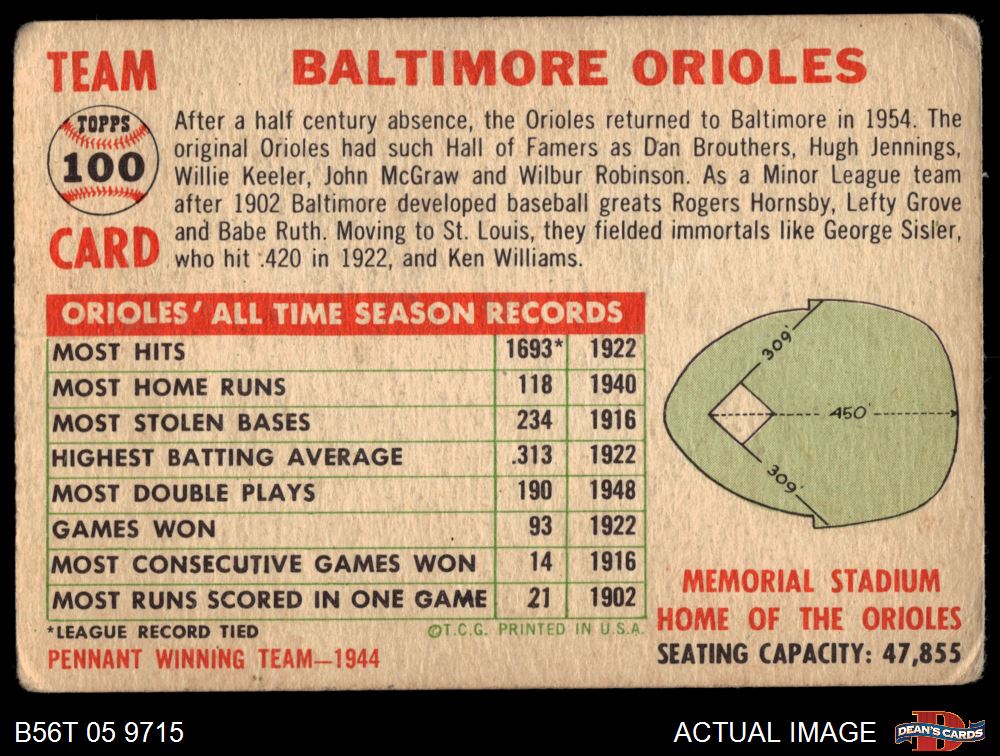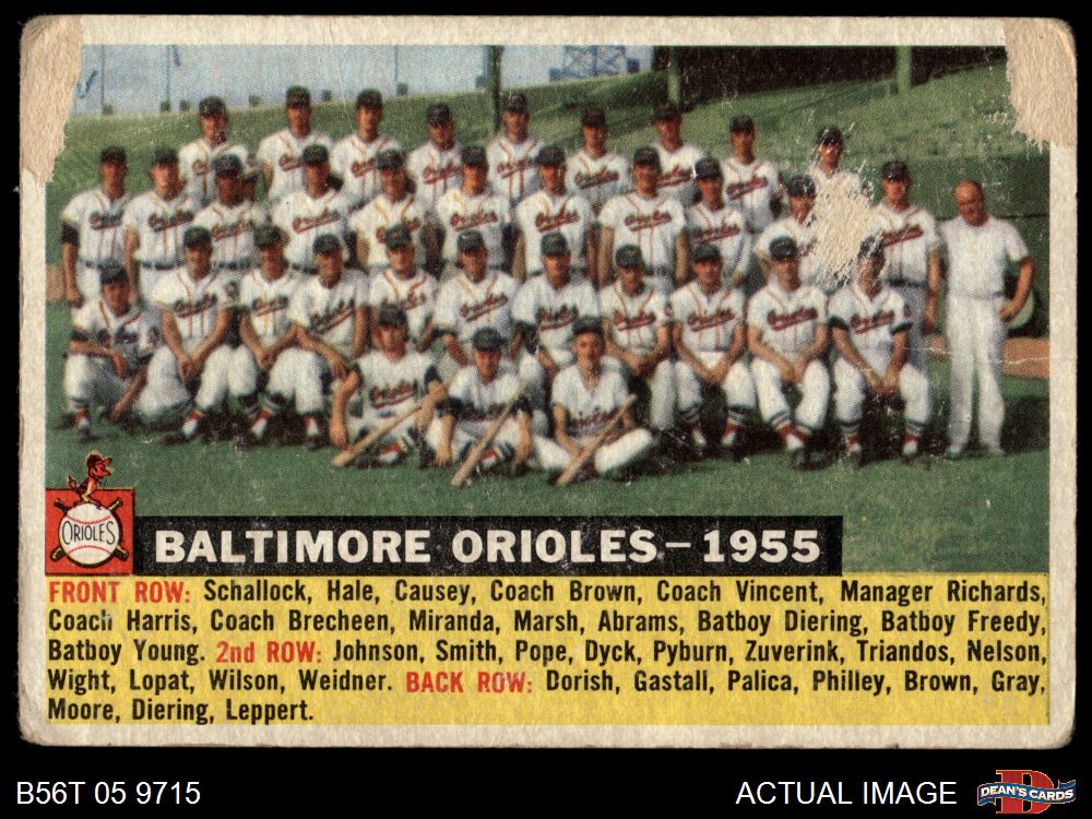 1956 Topps #100 D55 Orioles Team AUTHENTIC