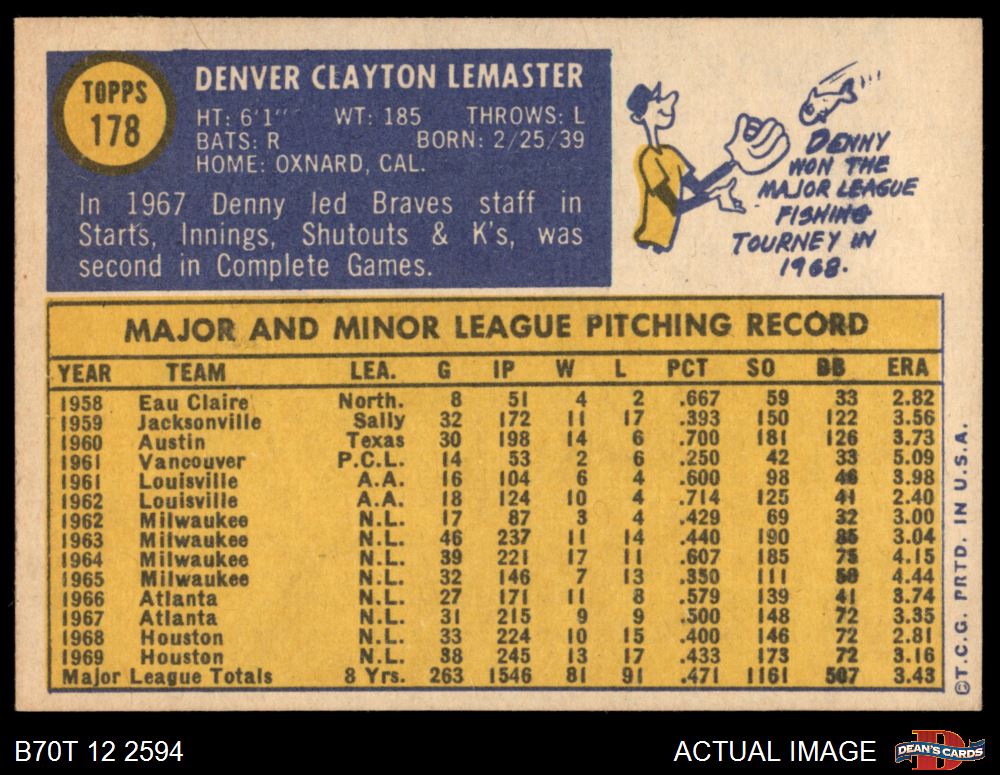 1970 Topps #178 Denny Lemaster 7.5 - NM+