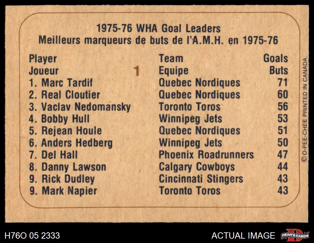 1976 O-Pee-Chee WHA #1 - Marc Tardif / Real Cloutier / Vaclav Nedomansky Goal Leaders 4 - VG/EX