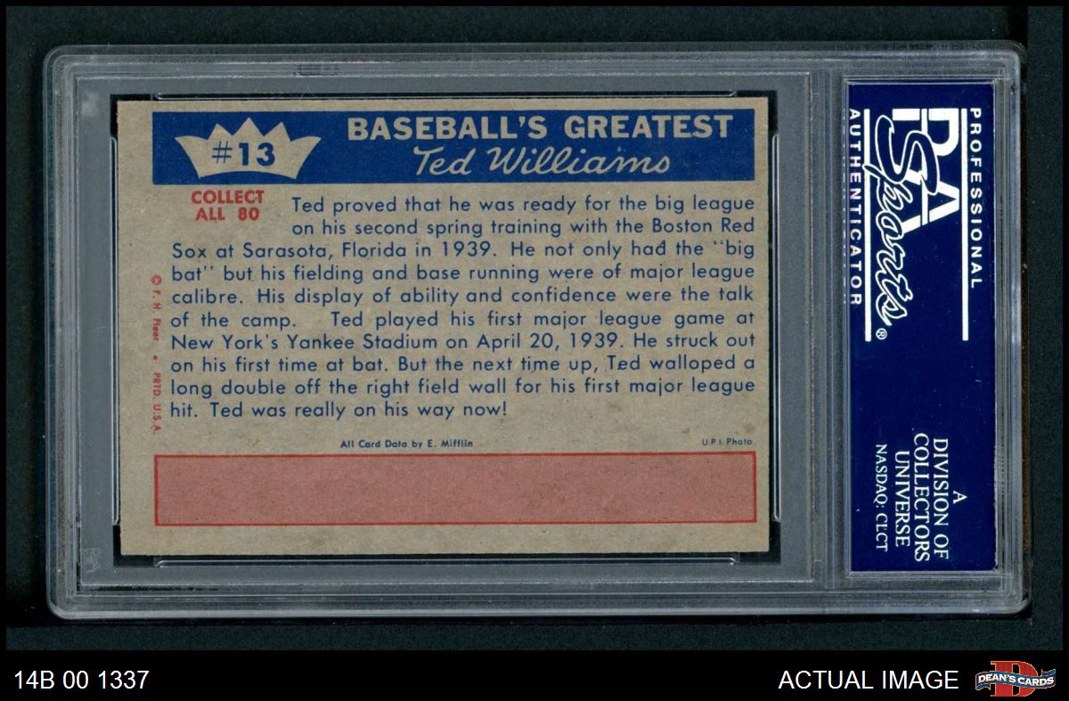 1959 Fleer #13 - Ted Williams Shows He Will Stay PSA 7 - NM
