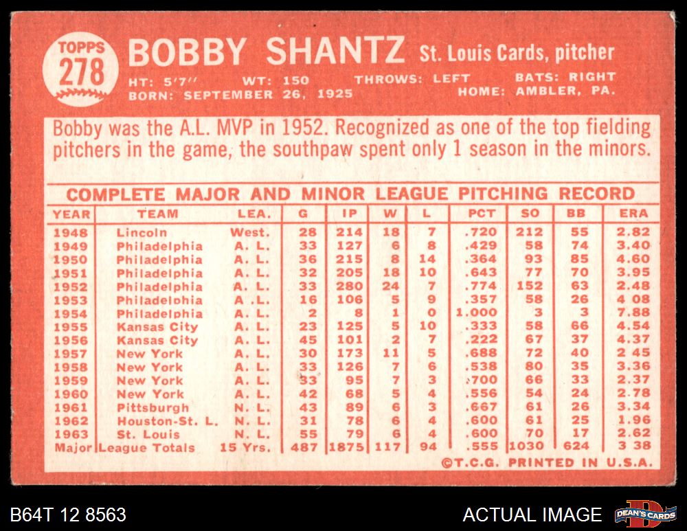 1964 Topps #278 Bobby Shantz 4 - VG/EX