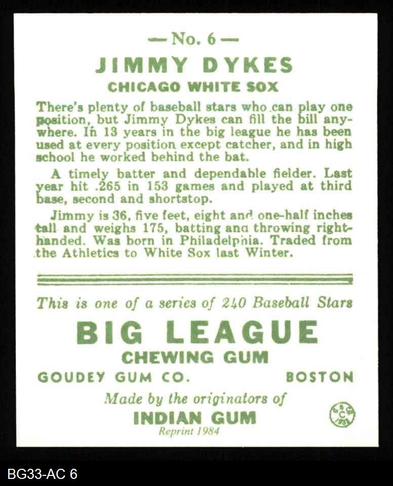 1933 Goudey Reprint #6 Jimmy Dykes 8 - NM/MT