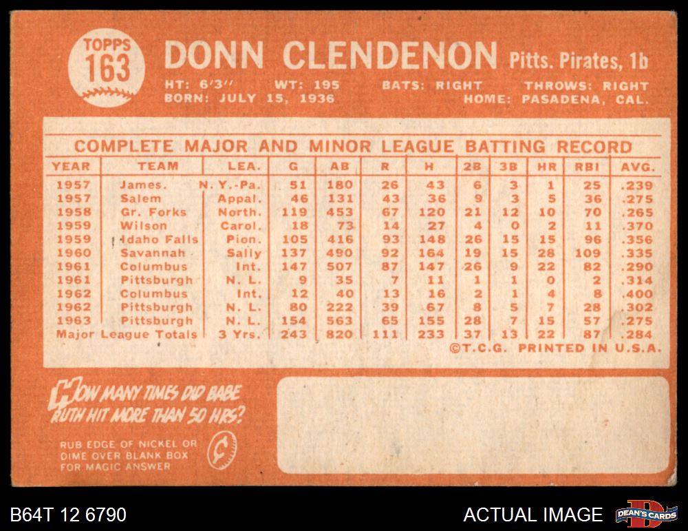 1964 Topps Baseball Cards (12,831 available)1964 Topps Pirates (853 available)