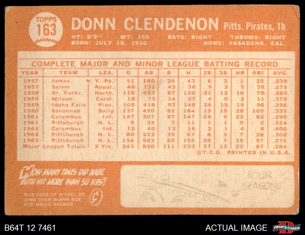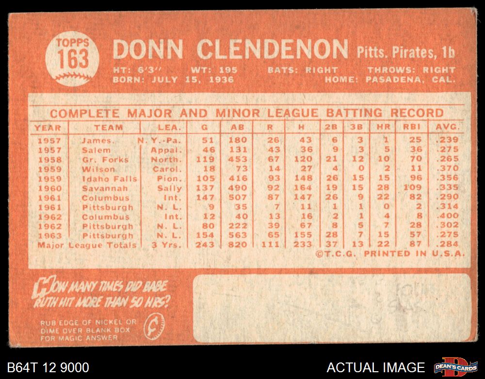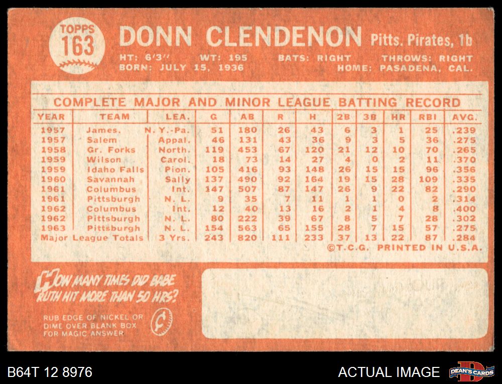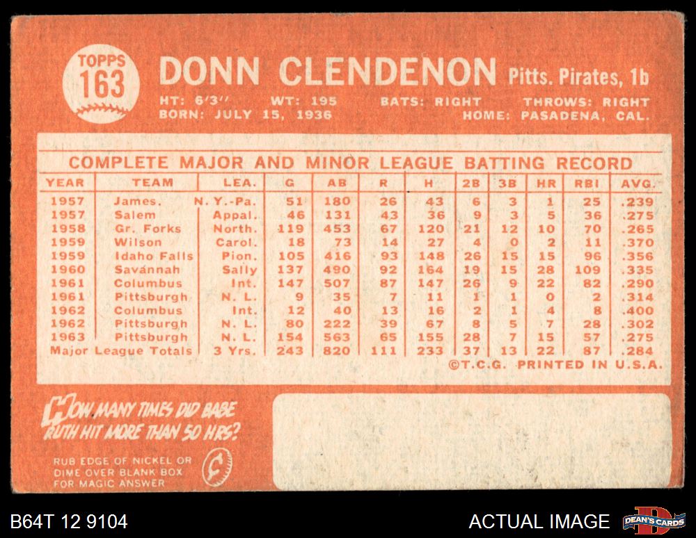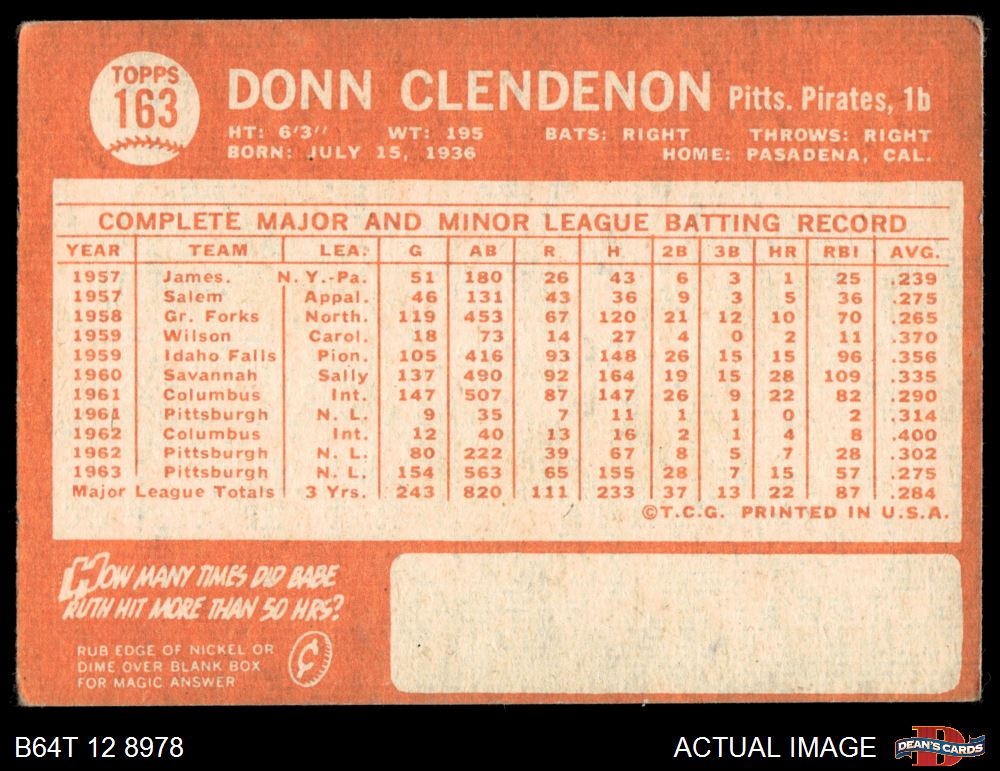 1964 Topps #163 Donn Clendenon