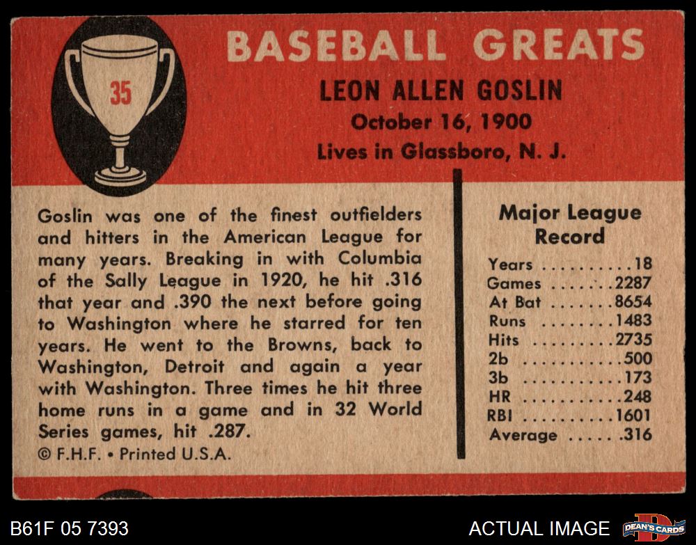 1961 Fleer #35 Goose Goslin 3 - VG
