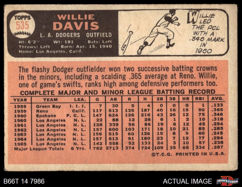 1966 Topps #535 Willie Davis 2 - GOOD