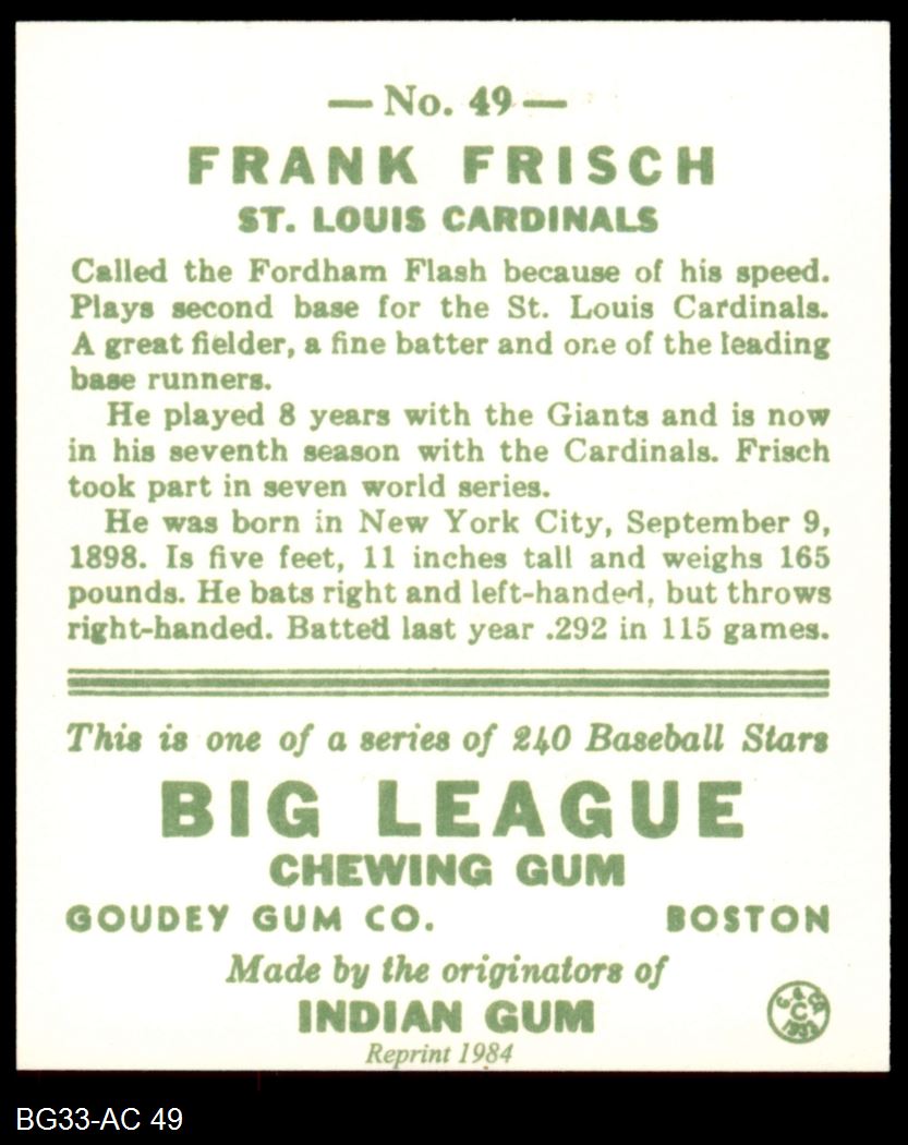 1933 Goudey Reprint (1,589 available)1933 Goudey Reprint Cardinals (73 available)