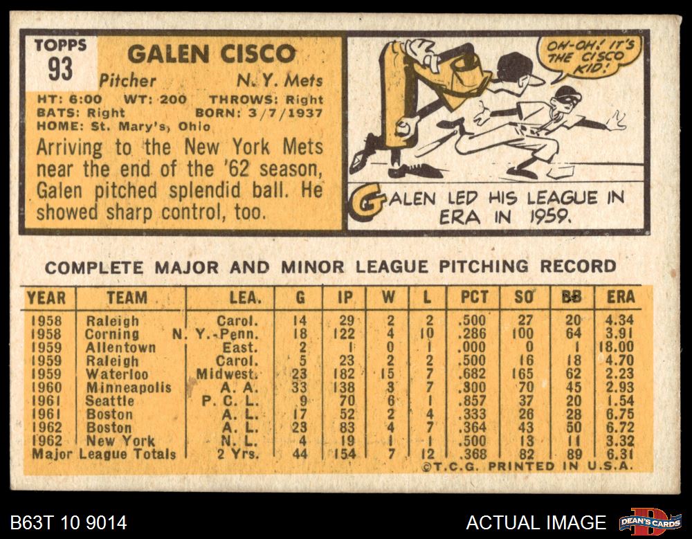 1963 Topps #93 Galen Cisco 4 - VG/EX