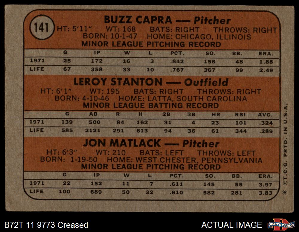 1972 Topps #141 - Jon Matlack / Buzz Capra / Leroy Stanton Mets Rookies 1.5 - FAIR