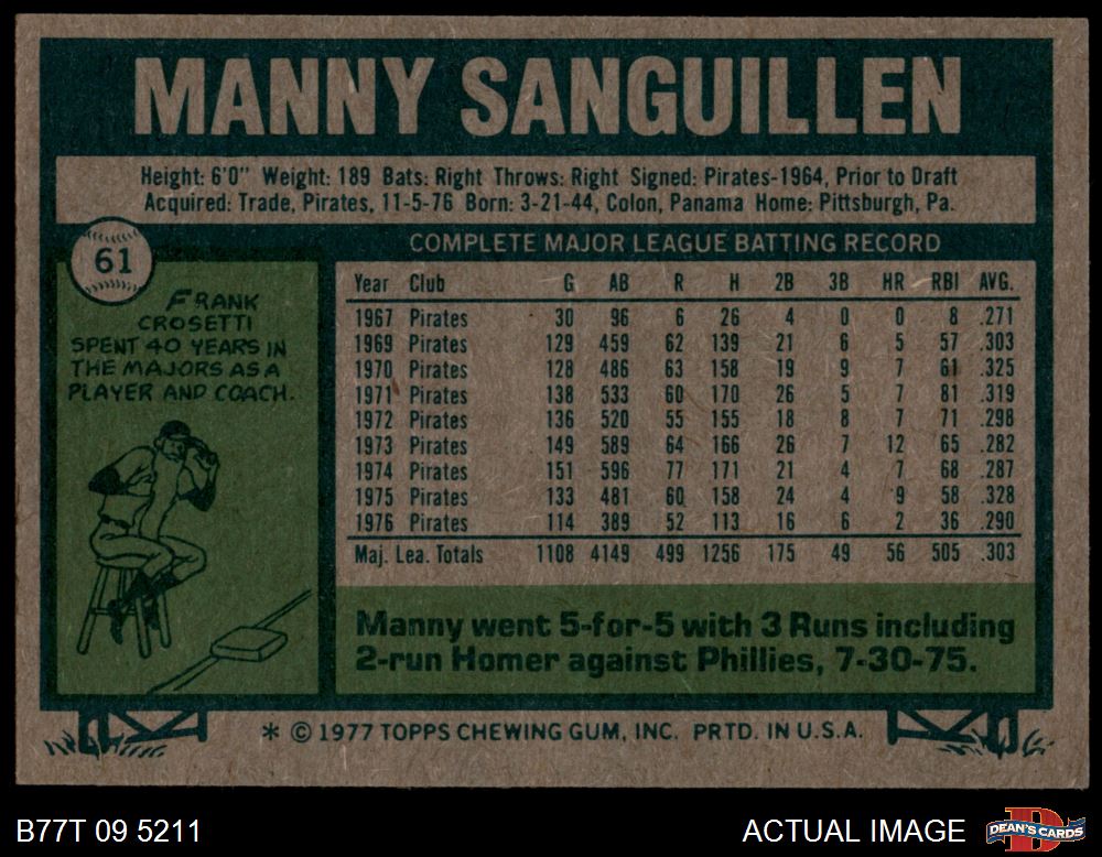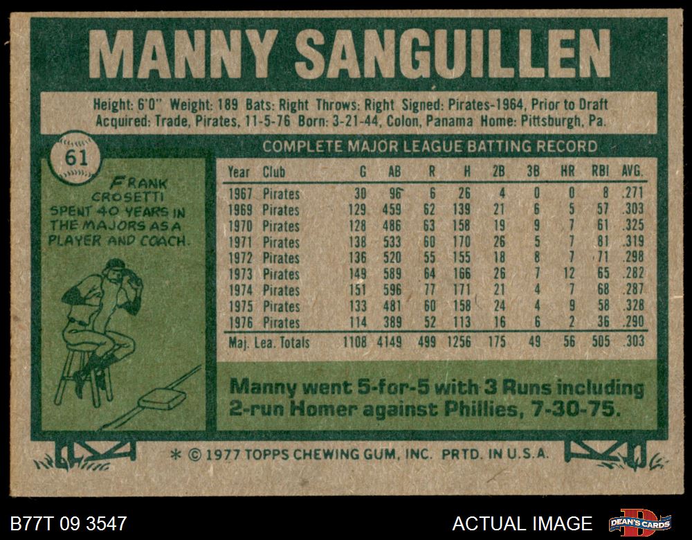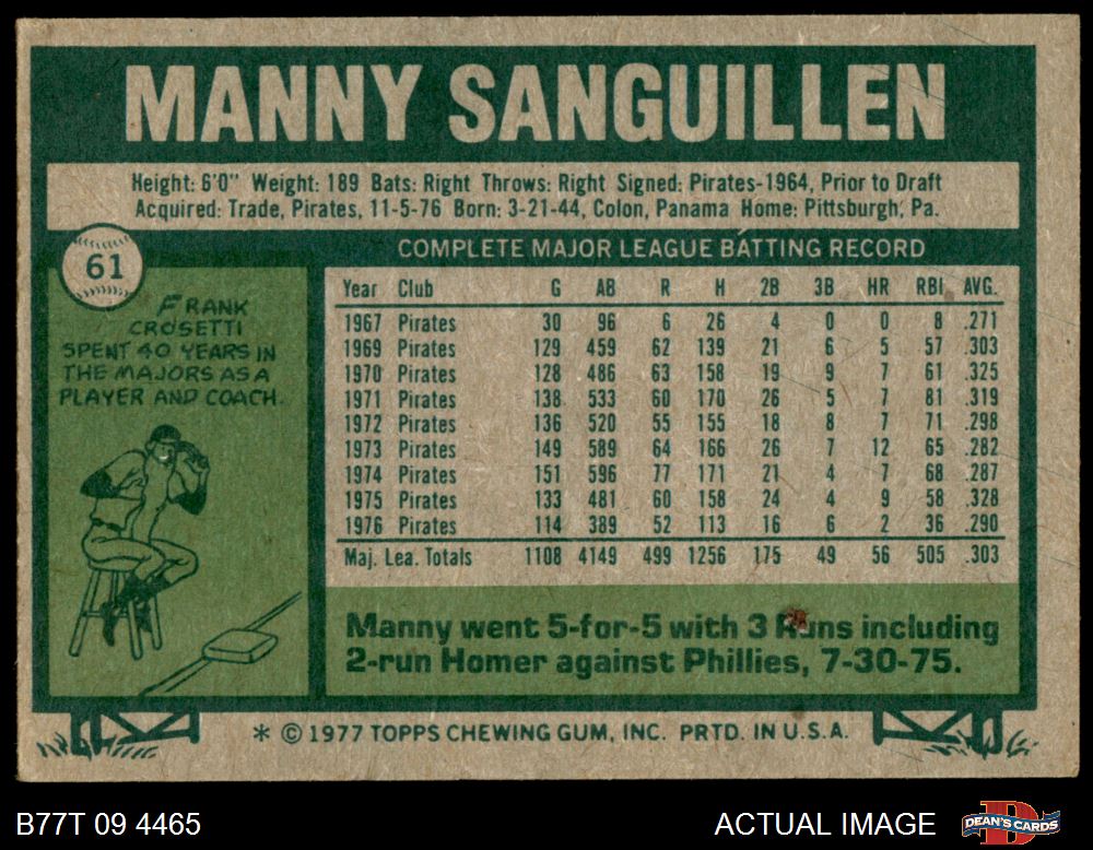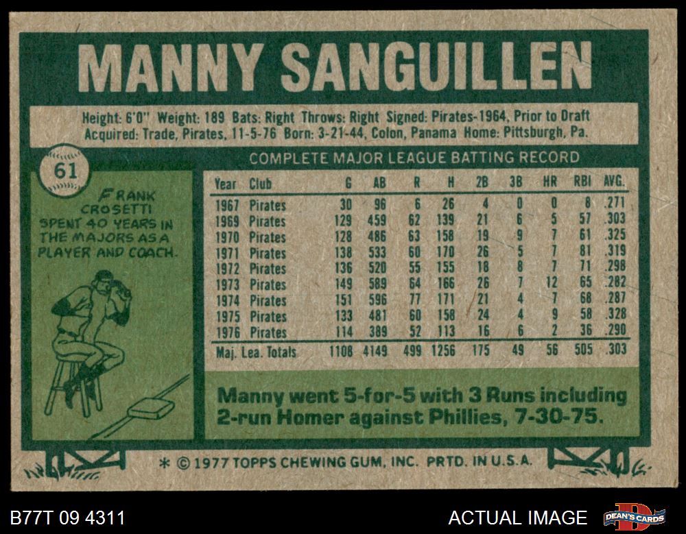 1977 Topps #61 Manny Sanguillen 4 - VG/EX