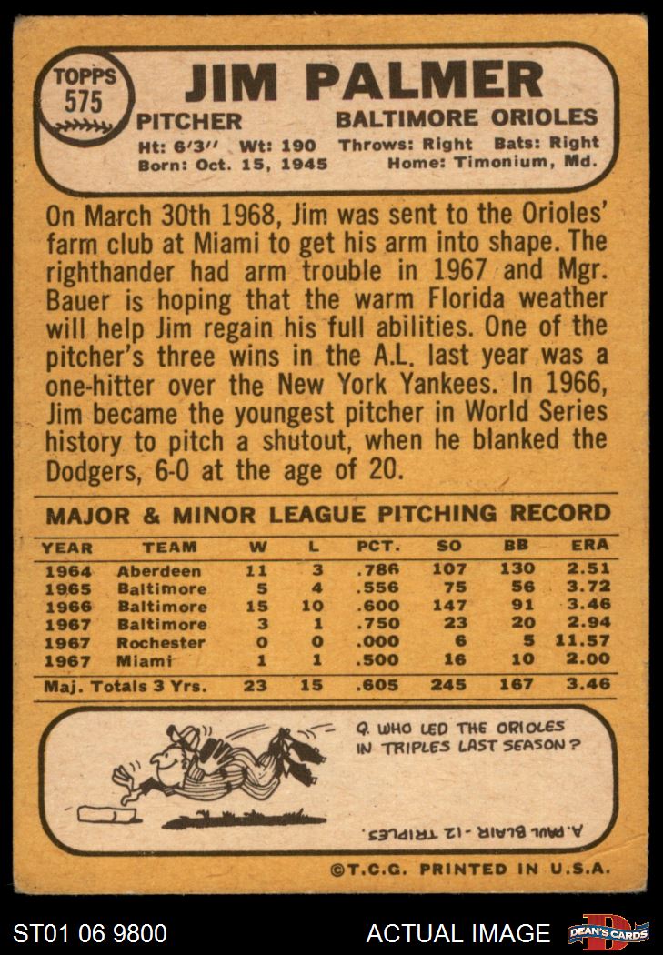 1968 Topps #575 Jim Palmer 1.5 - FAIR