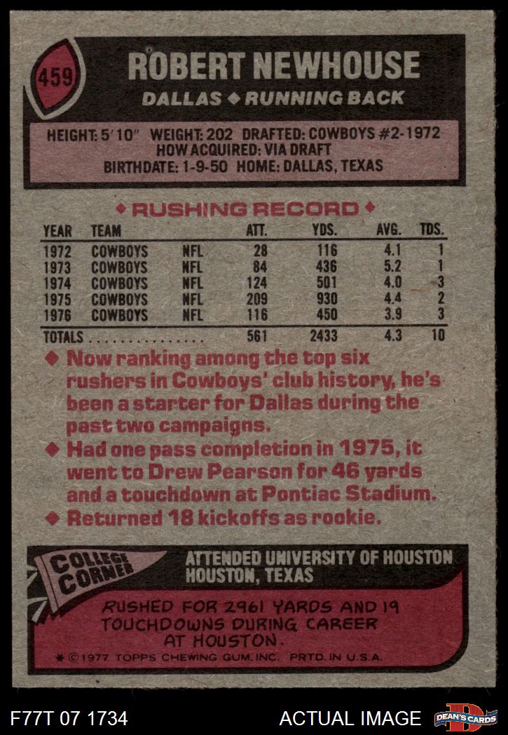 1977 Topps #459 Robert Newhouse 5 - EX