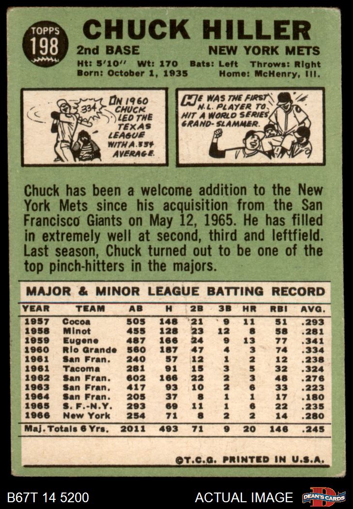 1967 Topps #198 Chuck Hiller