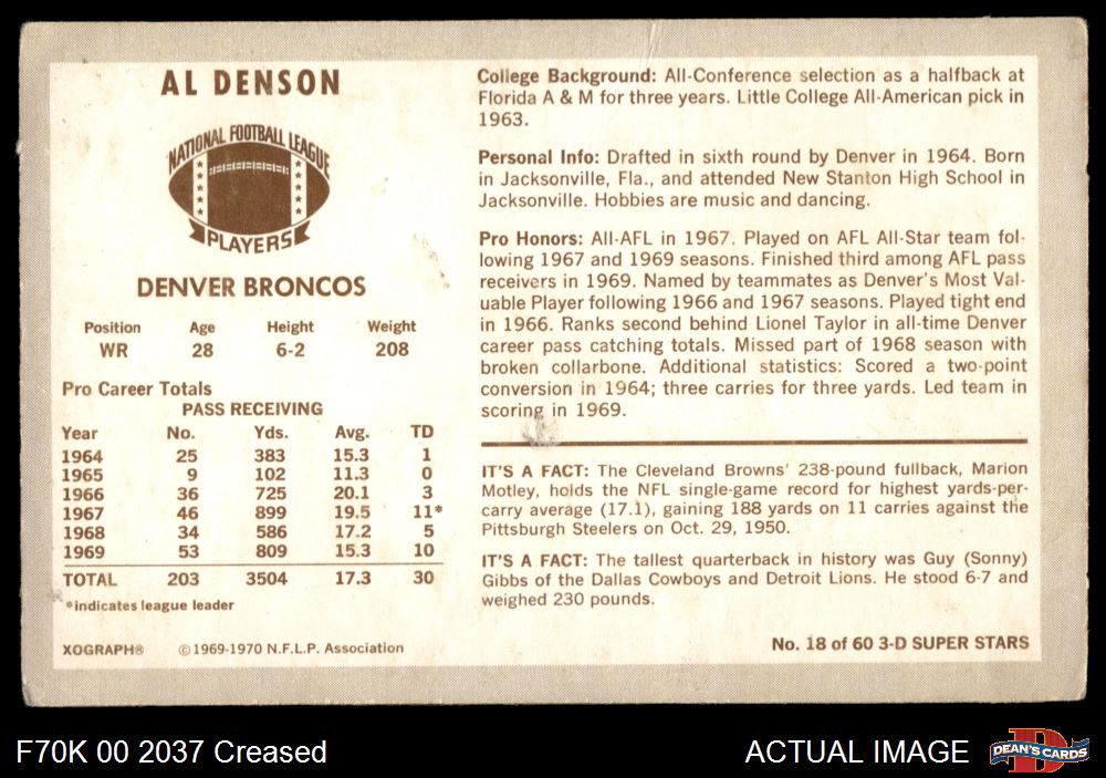 1970 Kellogg's #18 Al Denson 3 - VG