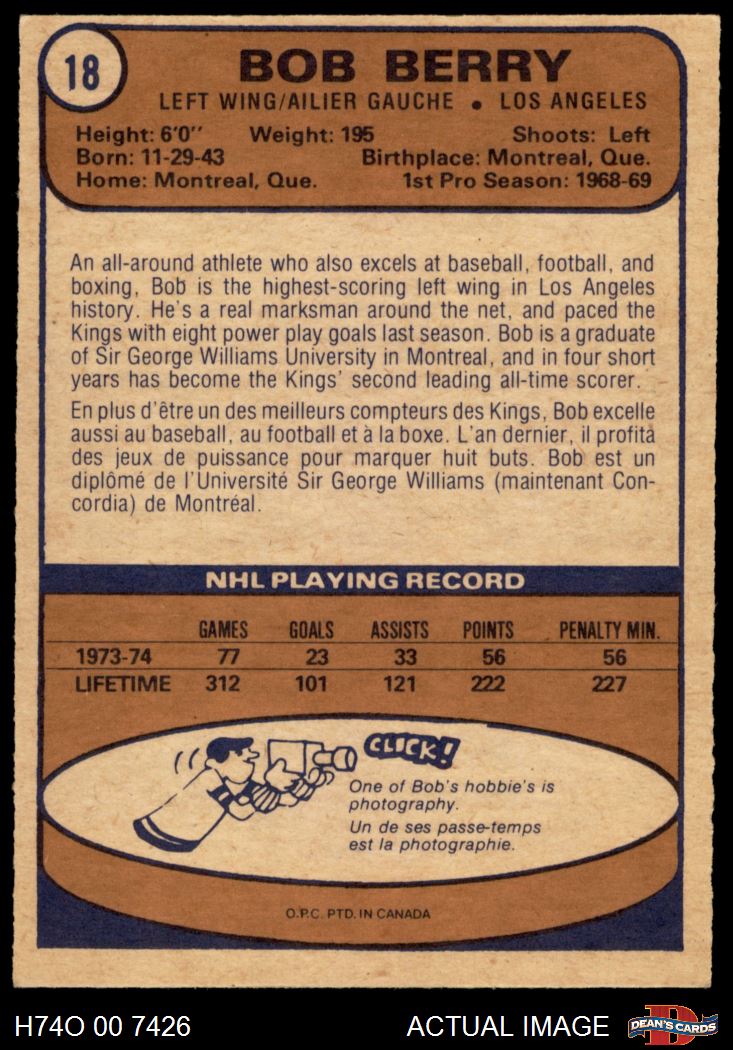 1974 O-Pee-Chee NHL #18 Bob Berry