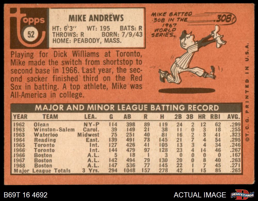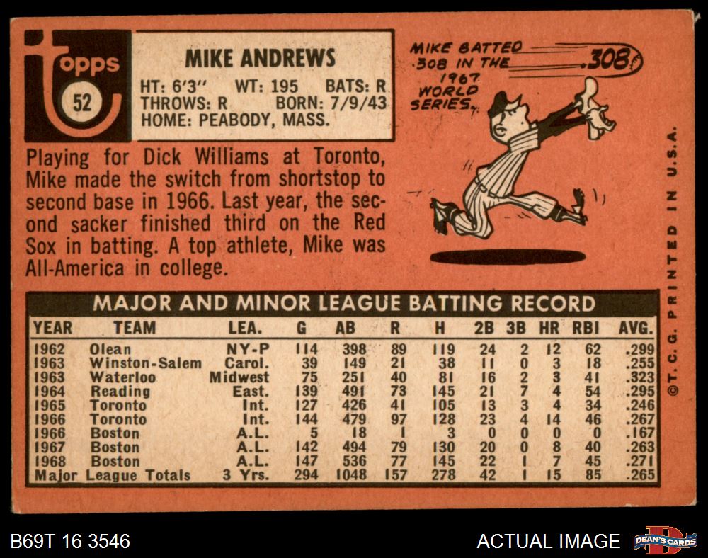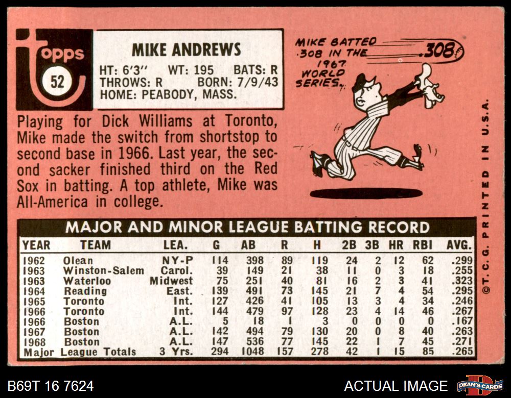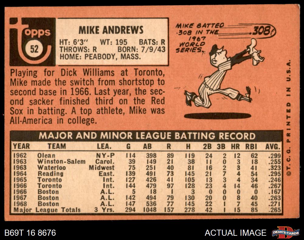 1969 Topps #52 Mike Andrews 3 - VG