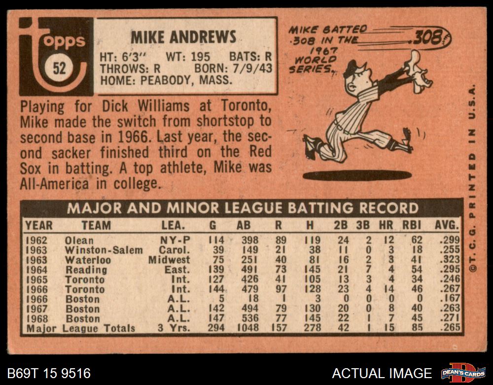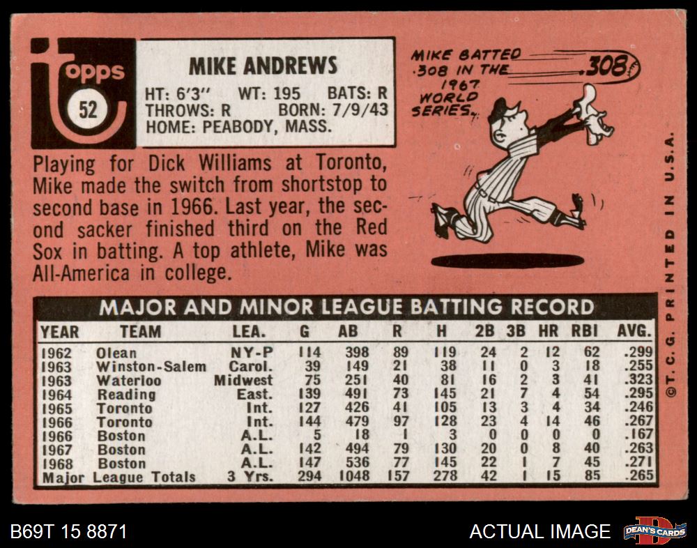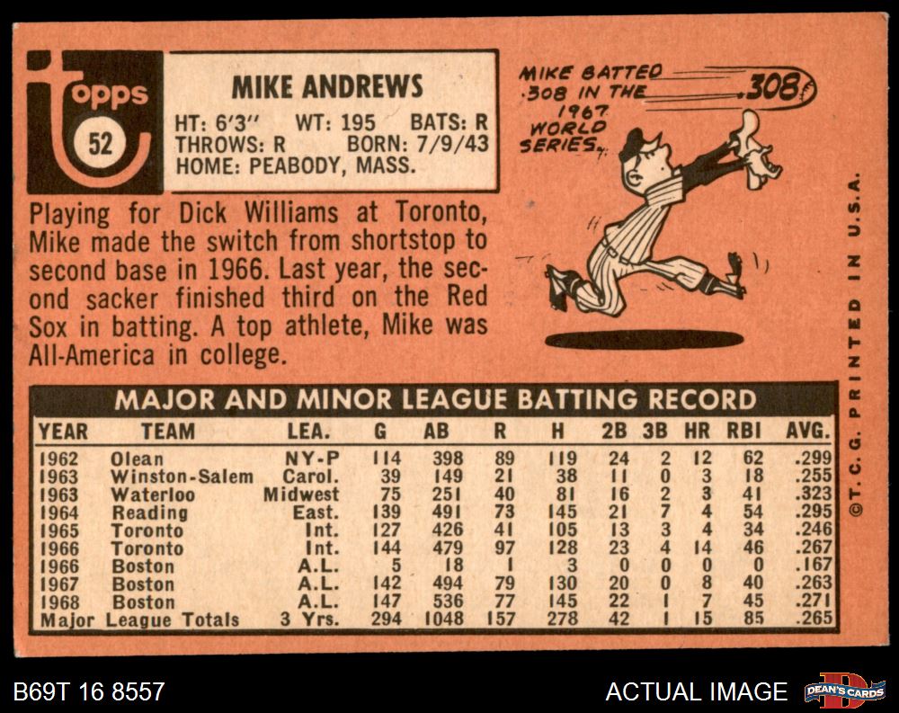 1969 Topps #52 Mike Andrews 4 - VG/EX