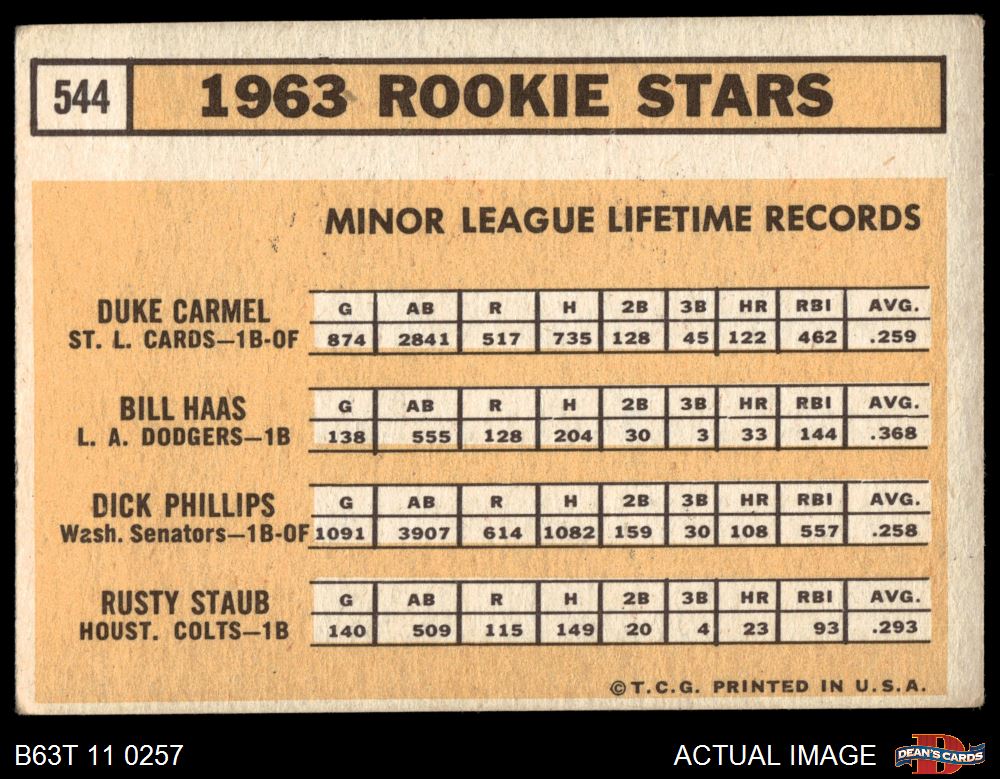 1963 Topps #544 - Rusty Staub / Dick Phillips / Bill Haas / Duke Carmel Rookie Stars 3 - VG