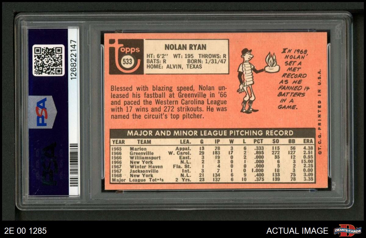1969 Topps #533 Nolan Ryan PSA 6 - EX/MT