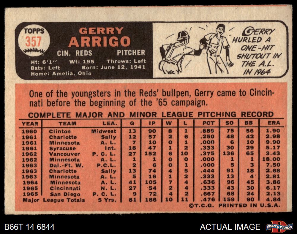 1966 Topps #357 Gerry Arrigo 2 - GOOD