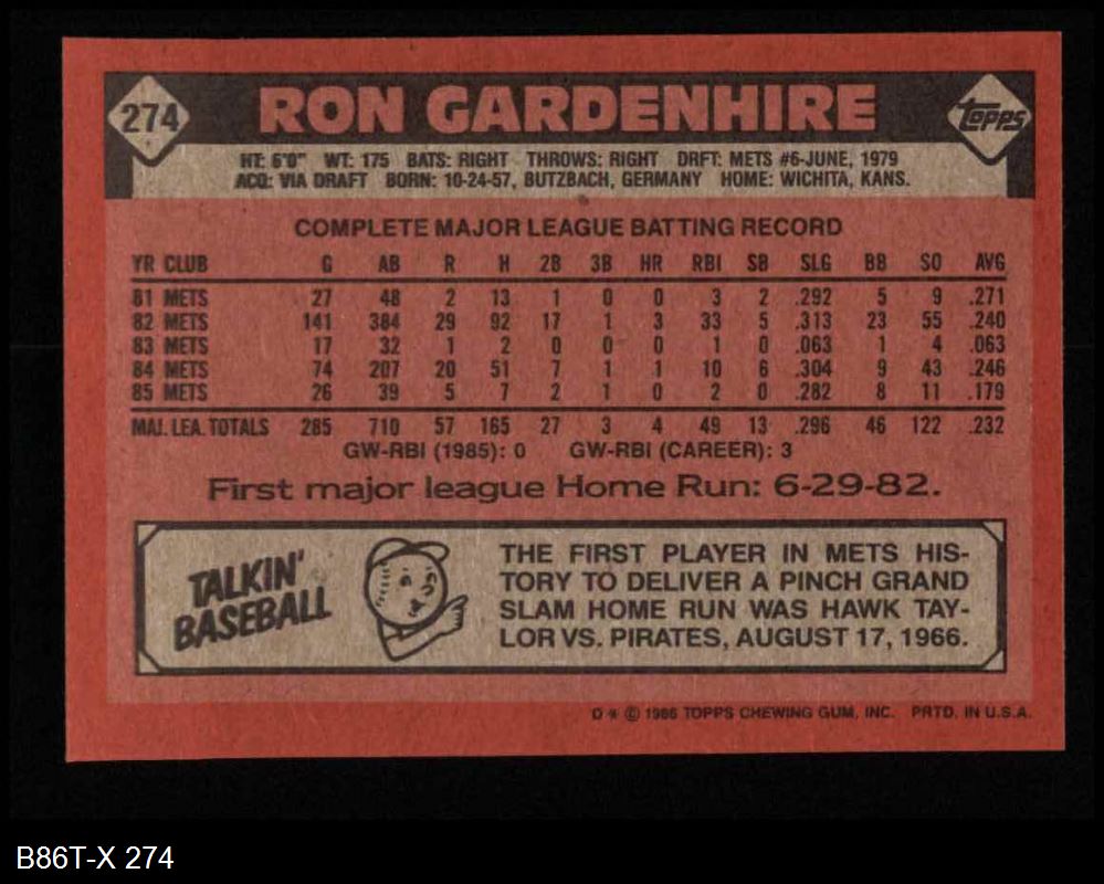 1986 Topps #274 Ron Gardenhire 8 - NM/MT