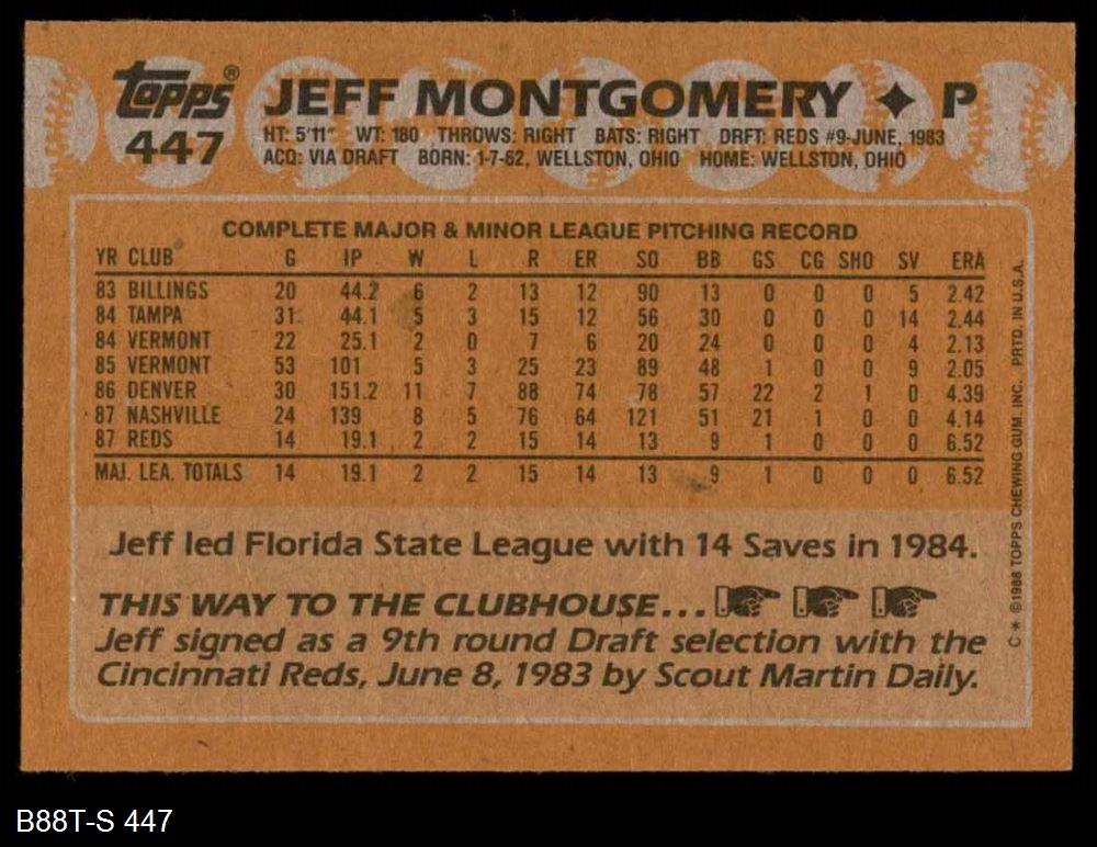 1988 Topps #447 Jeff Montgomery 8 - NM/MT