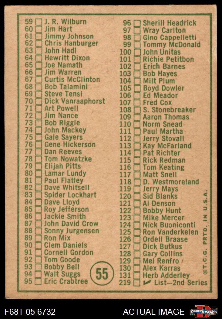 1968 Topps #55  Checklist Front Thumbnail